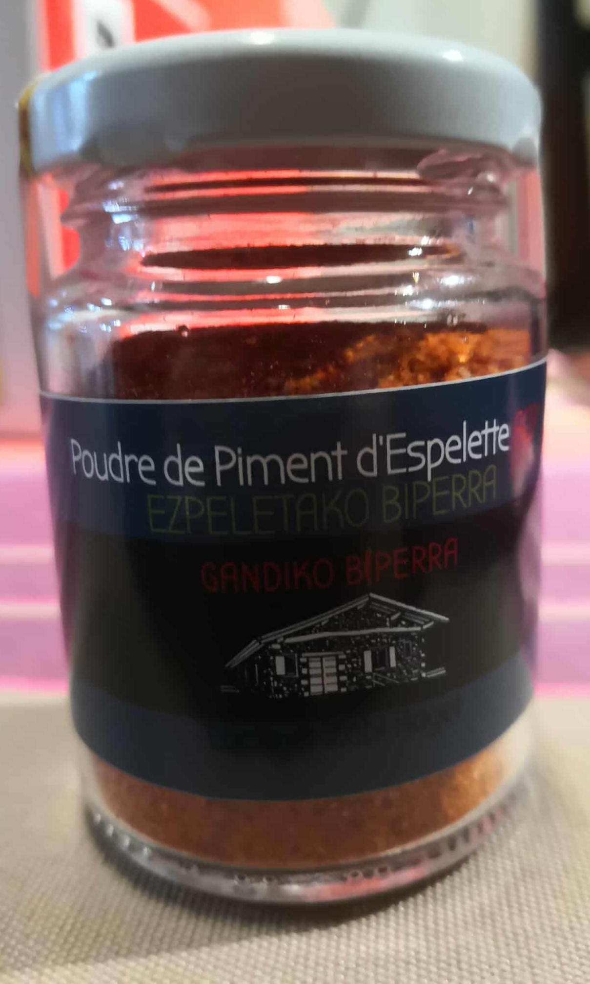 Pot de 40g, 197.5€ le kg Gandiko Biperra de Lucie et Xabi Hayet à Saint Pée sur Nivelle Piment d’Espelette AOP en poudre ! Assaisonnez vos plats avec ce piment basque !